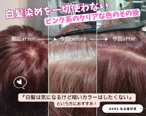 近年、白髪染め部分をブリーチで脱色するヘアスタイルも流行っていますが、当店では推奨していません。